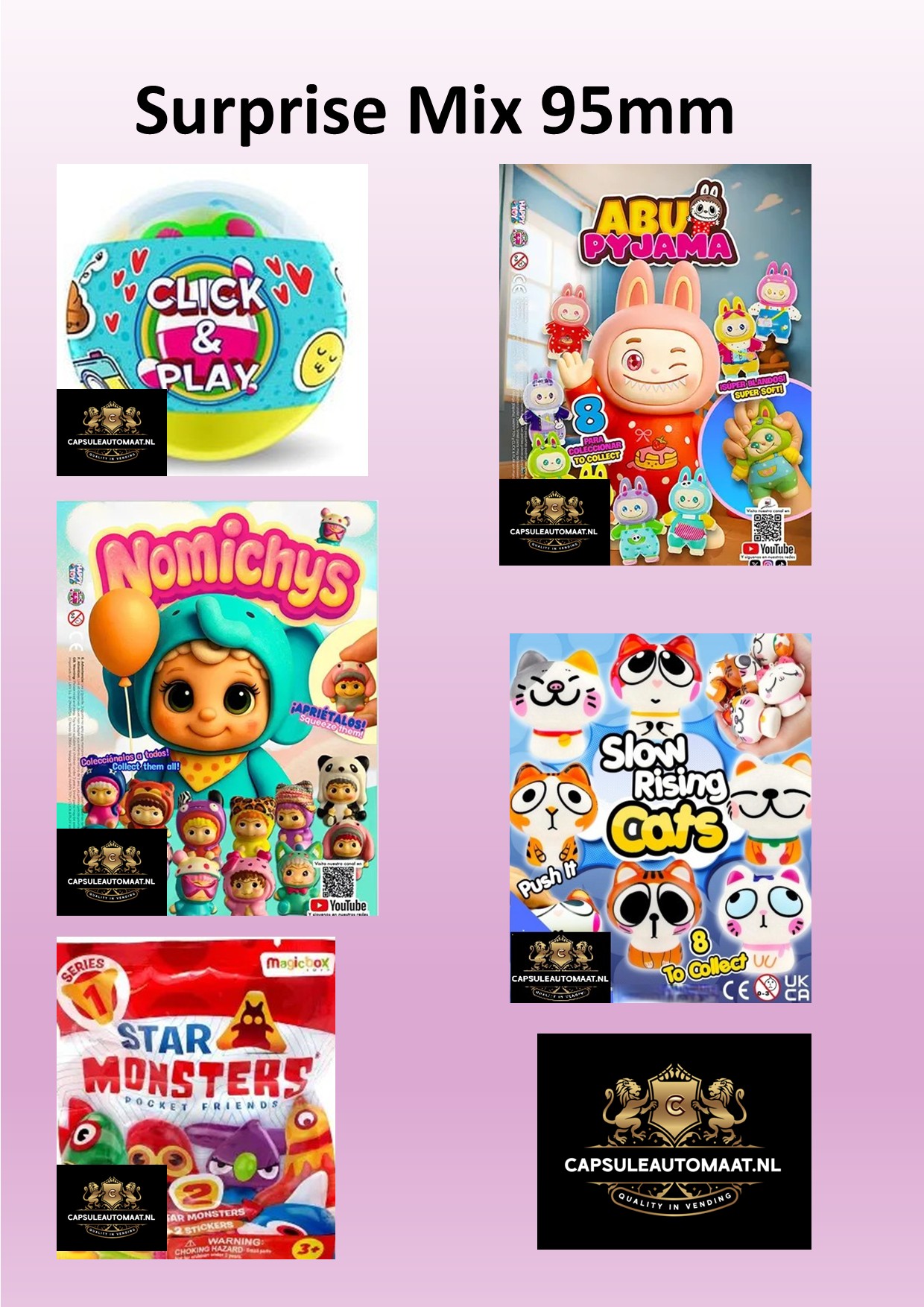 95mm Surprisemix (megamix) 300 stuks gemixte capsules in vrolijke kleuren (0.67 per stuk ex btw)